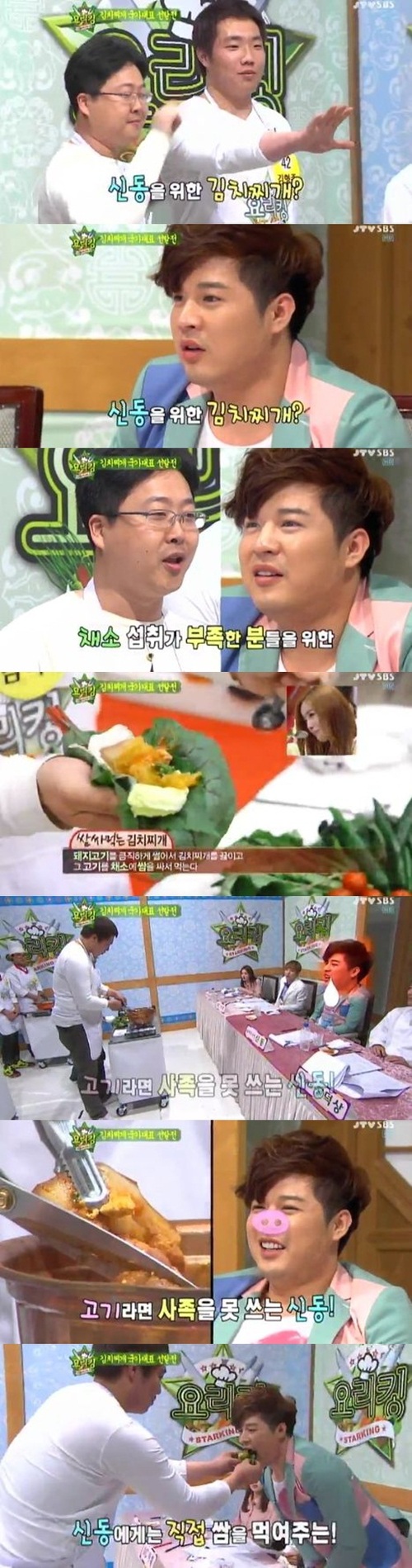 그룹 슈퍼주니어 멤버 신동을 위한 김치찌개가 등장했다.