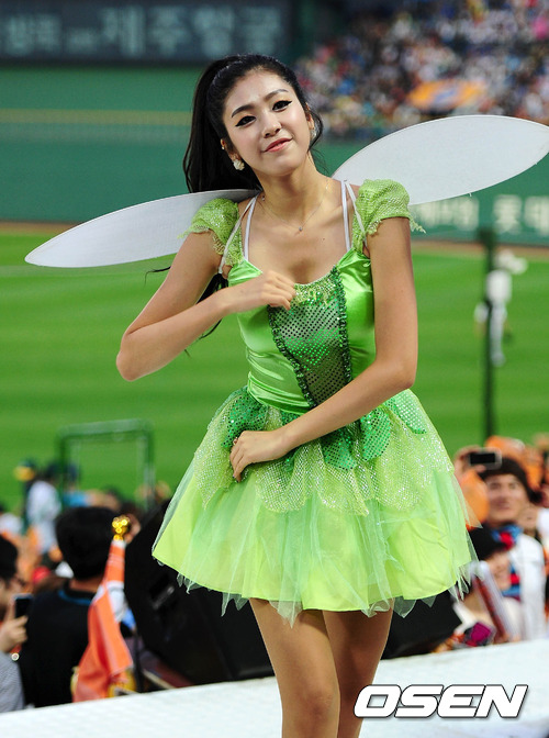 9일 오후 부산 사직야구장에서 열린 '2012 팔도 프로야구' 롯데 자이언츠와 KIA 타이거즈의 경기, 7회말 롯데 치어리더 김연정이 화려한 공연을 펼치고 있다.