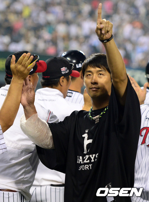 LG 김광삼이 승리를 기뻐하며 팬들에게 인사를 하고 있다. /jpnews@osen.co.kr