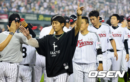 LG 김광삼이 승리를 기뻐하며 팬들에게 인사를 하고 있다. /jpnews@osen.co.kr