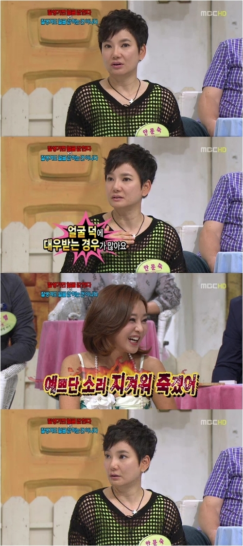 배우 안문숙이 예쁘다는 소리가 지겹다고 망언을 했다.