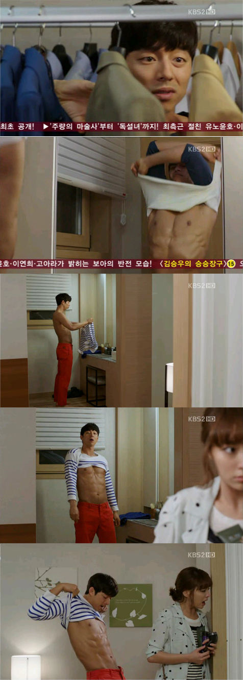 강경준은 자신에게 맞는 옷이 없자 길다란(이민정)과 함께 서윤재의 집을 찾아간다. 윤재의 옷장에서 옷을 꺼내 갈아입던 경준을 우연히 본 다란이 화들짝 놀라자 오히려 “맨날 보던 걸 텐데 왜 놀래!” 라며 비아냥거린다. 그러나 여전히 다란이 얼굴을 붉힌 채 어쩔 줄 몰라 하자 “맨날 보던 걸 텐데 뭘 훔쳐 봐!? 볼 라면 대 놓고 봐~.” 라며 자신의 상반신을 보여준다. 이에 다란이 쑥스러워 하며 고개를 들지 못하자 “길티처, 내가 좀 보여줄까? 이 아저씨, 몸 되게 좋아. 볼만해.” 라고 말하며 스스럼 없이 온몸을 보여주기 시작한다. 이어 “이게 한두 달 관리한 몸이 아니야. 이거 봐 초콜릿도 있다. 이 아저씬 이렇게 잘 만든 몸을 왜 길티처는 안 보여줬을까?“ 라고 능청을 떨며 다란을 당혹하게 했다