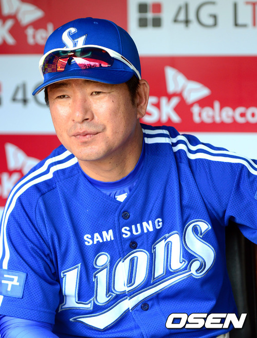 9일 오후 인천 문학구장에서 열린 '2012 팔도 프로야구' SK 와이번스와 삼성 라이온즈의 경기전 삼성 류중일 감독이 그라운드에서 훈련하는 선수들을 바라보고 있다.