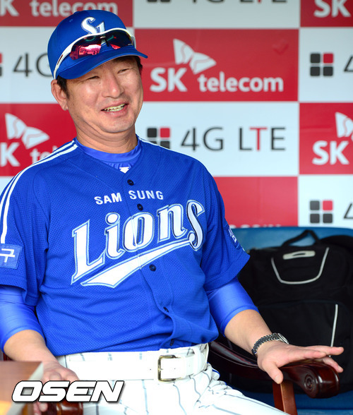 9일 오후 인천 문학구장에서 열린 '2012 팔도 프로야구' SK 와이번스와 삼성 라이온즈의 경기전 삼성 류중일 감독이 취재진의 질문에 미소를 짓고 있다.