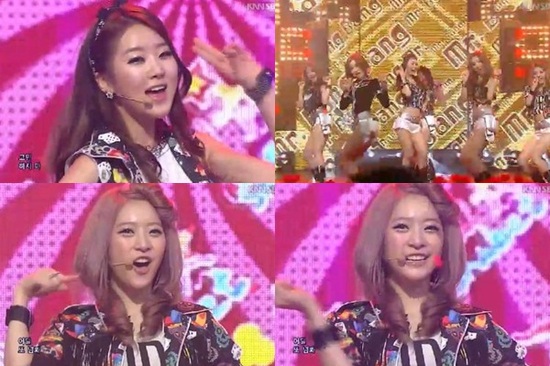 달샤벳은 10일 오후 3시 40분 방송된 SBS '인기가요'에 출연해 신곡 '미스터 뱅뱅'을 열창했다. 멤버들은 각선미가 시원하게 드러난 짧은 핫팬츠를 입고 등장, 통통 튀면서도 귀여운 안무로 눈길을 사로잡았다.