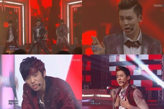 틴탑은 10일 오후 3시 40분 방송된 SBS '인기가요'에 출연해 신곡 '투 유'를 열창했다. 멤버들은 붉은 색 계열의 수트를 입고 등장해 의자를 이용한 그루브 있는 안무로 시선을 사로잡았다.