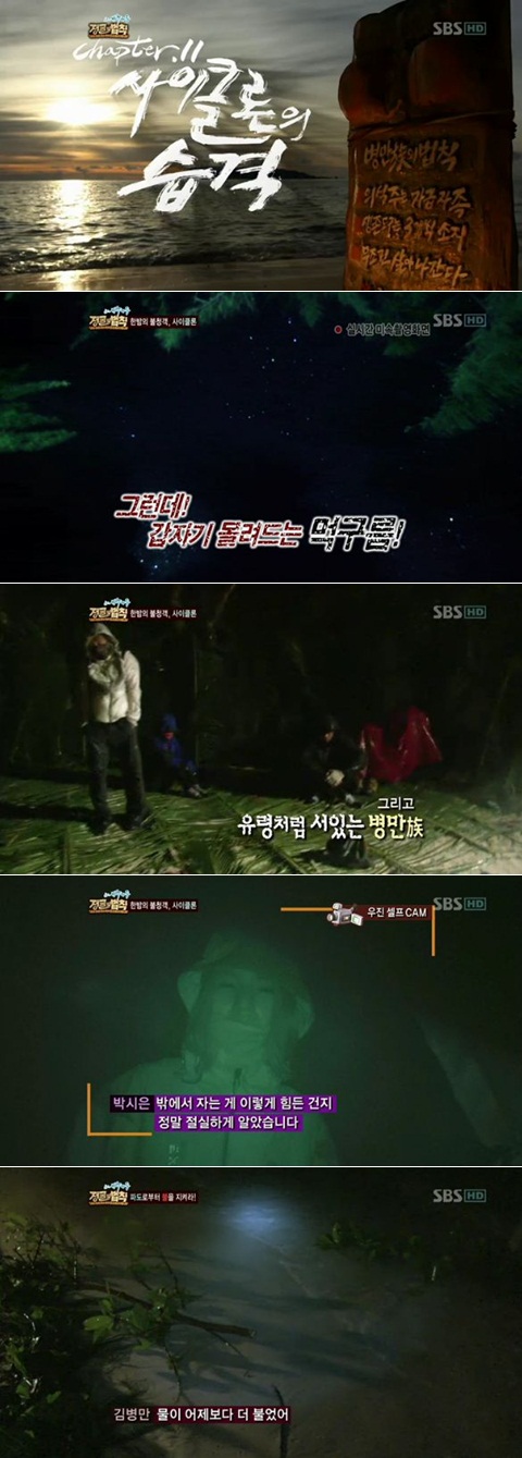 SBS 예능프로그램 '일요일이 좋다-정글의 법칙 in 바누아투'(이하 정글2)의 병만족(김병만 리키김 추성훈 노우진 광희 박시은)이 사이클론과의 사투를 벌였다.