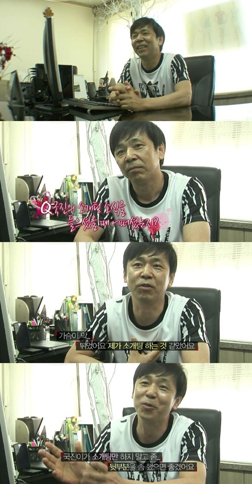 한편 김국진은 지난 2월 방송된 '남자, 그리고 식스팩' 미션 당시 소개팅을 걸고 제작진과 족구대회를 펼쳤고, 이에 패배한 김국진은 5월 중 소개팅에 나가겠다고 약속한 바 있다.