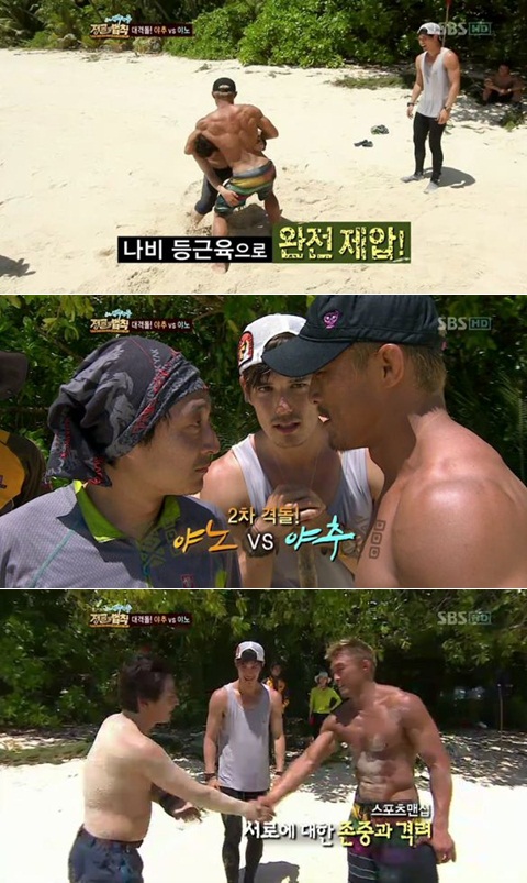 이 날 추성훈과 노우진은 모래사장에서 뜬금없이 씨름판을 벌였다. 다른 멤버들도 이들의 씨름을 그늘 밑에 앉아 여유 있게 지켜봤다. '정글에서의 생존'과는 전혀 거리가 먼 모습이었다.