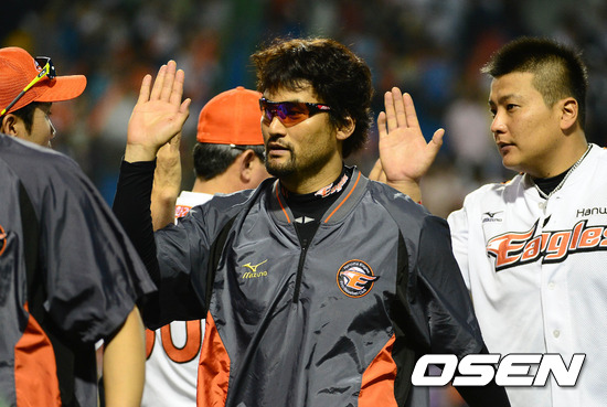 경기 종료 후 한화 박찬호와 김태균이 동료들과 승리의 기쁨을 나누고 있다. / sunday@osen.co.kr