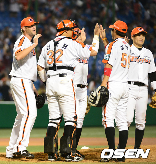 경기 종료 후 한화 선수들이 승리의 기쁨을 나누고 있다. / sunday@osen.co.kr