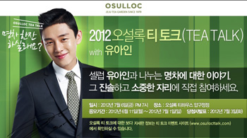 ㈜아모레퍼시픽 프리미엄 녹차 브랜드 오설록이 ‘2012 오설록 티 토크(TEA TALK) with 유아인’ 이벤트를 앞두고 참가자를 공개 모집한다.