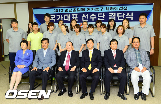11일 오후 서울 방이동 올림픽파크텔에서 진행된 '2012 런던올림픽 여자농구 국가대표 선수단 결단식'에서 대표팀 선수들이 포즈를 취하고 있다