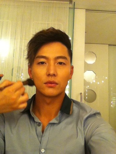 이정진은 11일 오후 자신의 트위터에 "'꿈꾸는 광고 제작소' 가기 전 메이크업 중 " 이라는 글과 함께 사진을 게재했다.