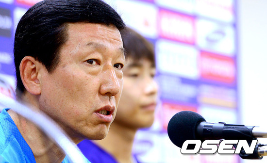 레바논전을 하루 앞둔 11일 오후 경기 고양종합운동장에서 열린 공식기자회견에서 최강희 감독이 각오를 밝히고 있다.