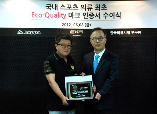 스포츠 패션 브랜드 EXR과 KAPPA가 한국의류시험연구원(KATRI)이 주관하는 친환경제품 인증마크 ‘에코퀄리티(Eco-Quality, EQ)’를 국내 스포츠브랜드 최초로 획득했다.