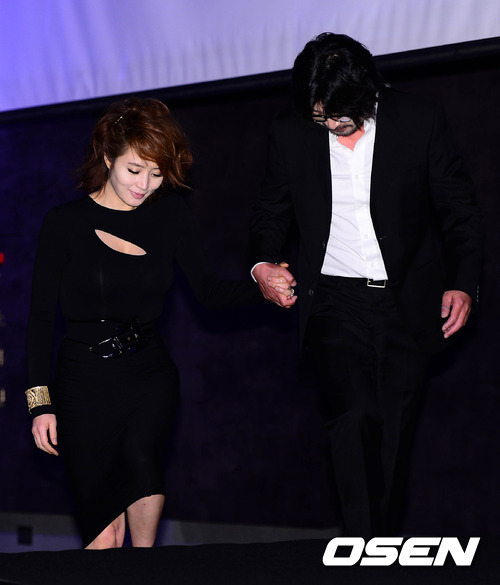 12일 오전 서울 중구 웨스틴 조선호텔에서 열린 영화 '도둑들'(감독 최동훈) 제작보고회에서 배우 김혜수와 김윤석이 무대를 오르고 있다.