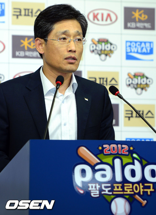 12일 오전 서울 강남구 도곡동 한국야구위원회(KBO) 야구회관에서 양해영 KBO 사무총장이 이사회 결과를 브리핑하고 있다.