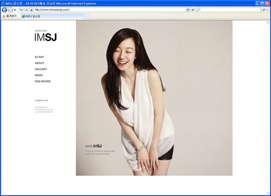 심플한 디자인과 세련된 색감으로 제작된 임수정의 공식 홈페이지 메인 화면은 3색 매력이 돋보이는 미공개 프로필 컷이 화면 가득 재생되며 눈길을 끈다. 'SJ SAY', , , , 'SNS BOARD' 총 다섯 개의 메뉴로 구성된 홈페이지는 앞으로 임수정과 팬들 간의 거리를 좁혀주는 소통의 창구가 될 것으로 예상된다.
