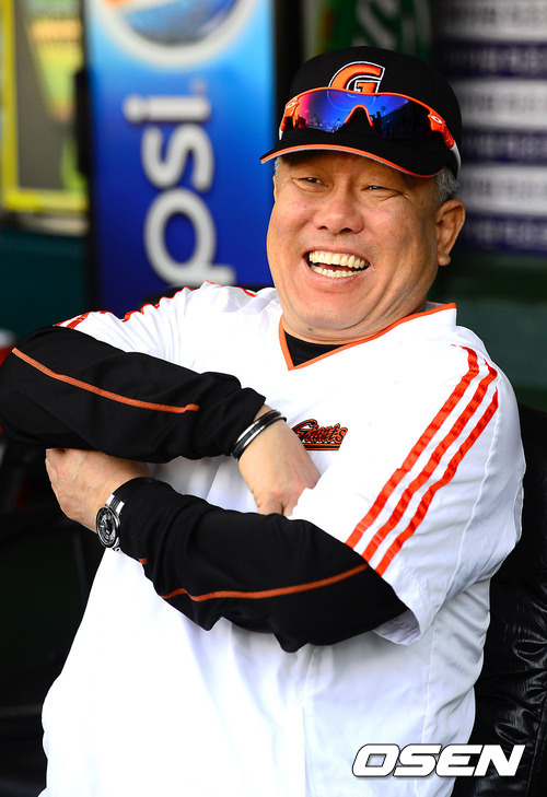 12일 오후 부산 사직구장에서 열리는 2012 팔도 프로야구 롯데 자이언츠와 두산 베어스의 경기 전 롯데 양승호 감독이 미소 짓고 있다