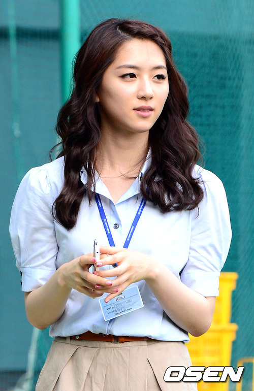 12일 오후 서울 잠실구장에서 열리는 '2012 팔도 프로야구' LG 트윈스와 SK 와이번스의 경기전 XTM 조유영 아나운서가 그라운드에서 훈련을 하는 선수들을 바라보고 있다.