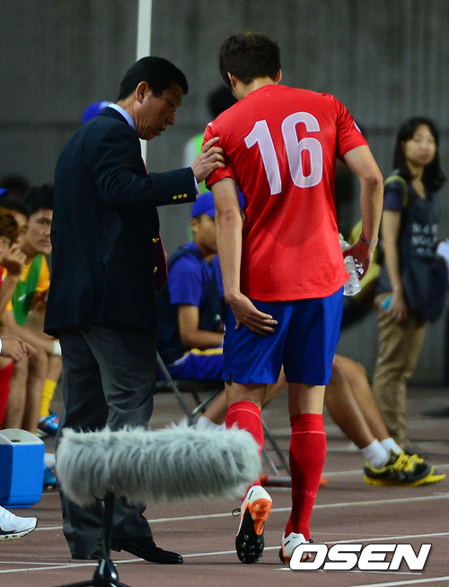 12일 오후 고양종합운동장에서 열린 2014 브라질 월드컵 최종예선 2차전 한국과 레바논의 경기, 전반 한국 기성용이 부상으로 교체되고 있다.