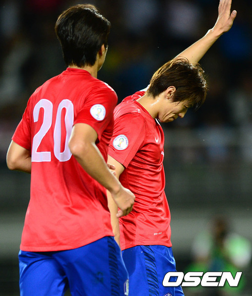 12일 오후 고양종합운동장에서 열린 2014 브라질 월드컵 최종예선 2차전 한국과 레바논의 경기, 전반 한국 김보경이 선제골을 성공시키고 환호하고 있다.