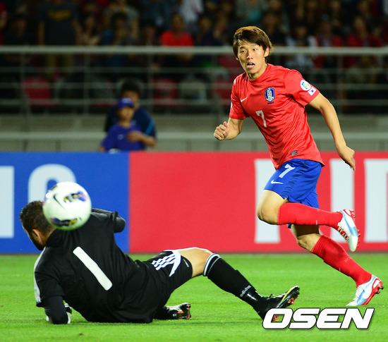 12일 오후 고양종합운동장에서 열린 2014 브라질 월드컵 최종예선 2차전 한국과 레바논의 경기, 후반 한국 김보경이 추가골을 넣고 기뻐하고 있다.