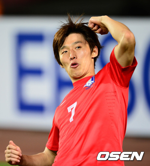 12일 오후 고양종합운동장에서 열린 2014 브라질 월드컵 최종예선 2차전 한국과 레바논의 경기, 후반 한국 김보경이 팀의 두번째 골을 성공시키고 환호하고 있다.