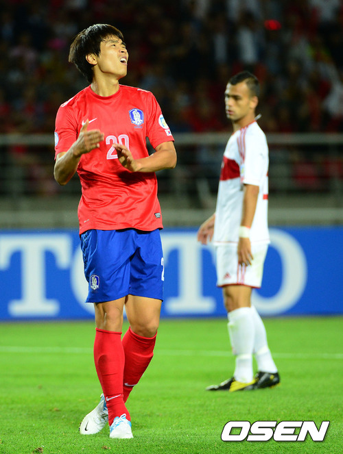 12일 오후 고양종합운동장에서 열린 2014 브라질 월드컵 최종예선 2차전 한국과 레바논의 경기, 후반 한국 이동국이 슛이 빗나가자 아쉬워하고 있다.