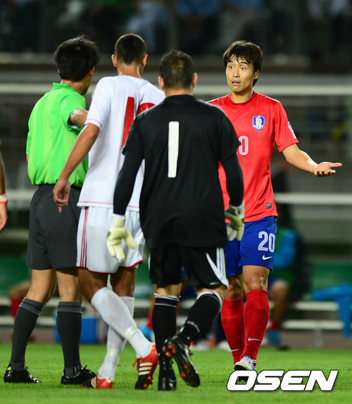12일 오후 고양종합운동장에서 열린 2014 브라질 월드컵 최종예선 2차전 한국과 레바논의 경기, 후반 한국 이동국이 레바논 선수와 신경전을 벌이고 있다.