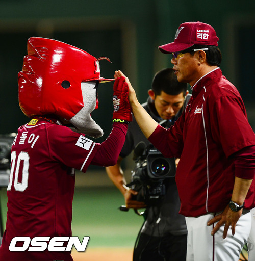 경기를 마치고 넥센 턱돌이가 김시진 감독과 하이파이브를 하고 있다. / rumi@osen.co.kr