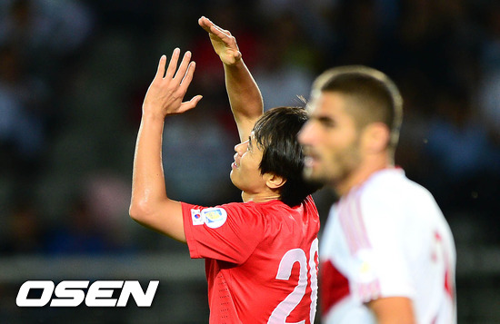 12일 오후 고양종합운동장에서 열린 2014 브라질 월드컵 최종예선 2차전 한국과 레바논의 경기, 후반 한국 이동국이 슛이 빗나가자 아쉬워하고 있다.
