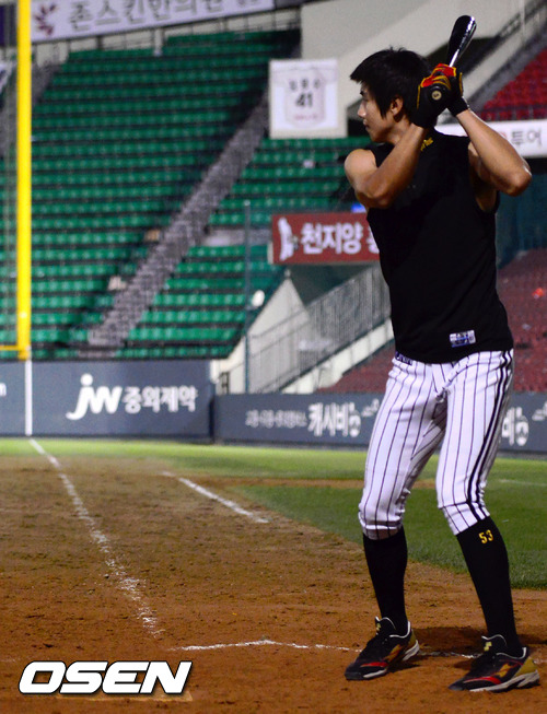 경기 종료 후 LG 이대형이 그라운드에 나와 배팅 연습을 하고 있다. / youngrae@osen.co.kr