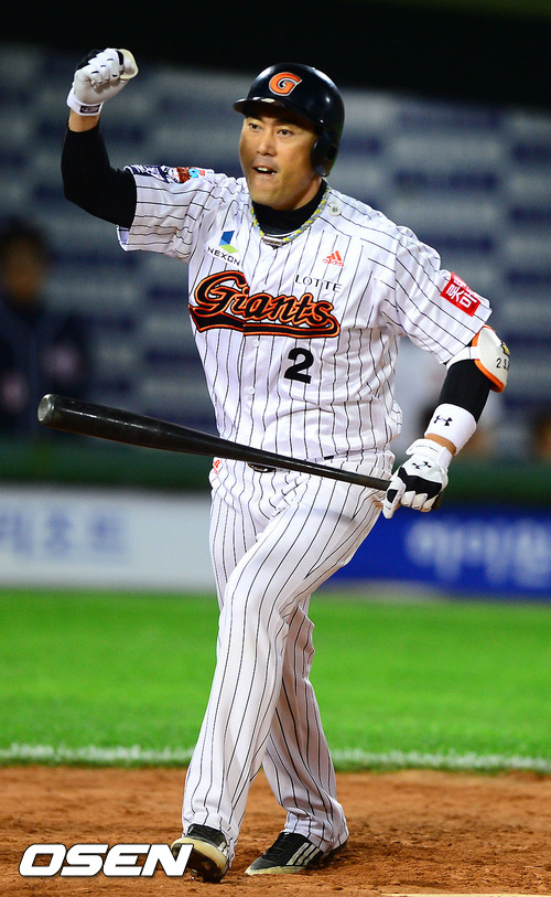 경기종료 후 끝내기 밀어내기 볼넷 만든 롯데 조성환이 환호하고 있다. / soul1014@osen.co.kr