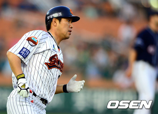 13일 오후 부산 사직구장에서 열린 2012 팔도 프로야구 롯데 자이언츠와 두산 베어스의 경기 3회말 롯데 선두타자 전준우가 선취 솔로홈런을 날리고 베이스를 돌고 있다.