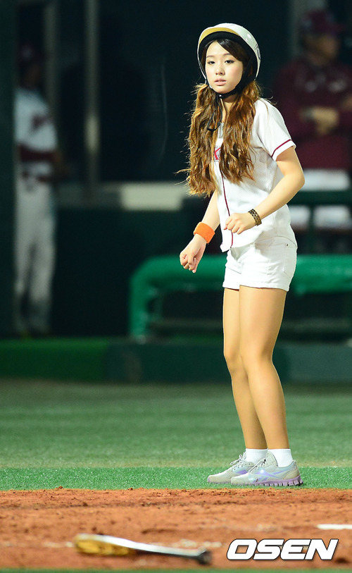 13일 오후 목동구장에서 열린 '2012 팔도 프로야구' 넥센 히어로즈와 KIA 타이거즈의 경기에서 4회말 1사 주자 2루 넥센 서건창이 파울 타구를 날렸을때 넥센 배트걸 민수진이 배트를 치우러 나왔다가 어떻게 할지 생각에 잠겨있다.
