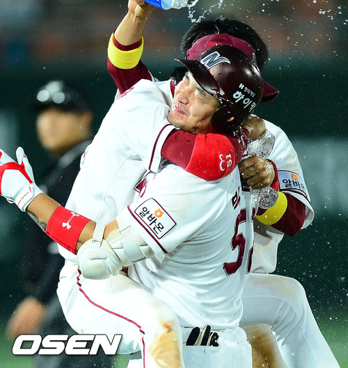 경기를 마치고 넥센 박병호가 물세례를 받고 있다. / rumi@osen.co.kr