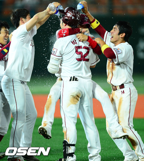 경기를 마치고 넥센 박병호가 물세례를 받고 있다. / rumi@osen.co.kr