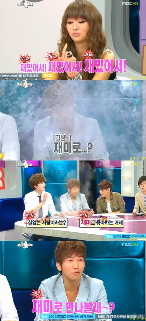이어 "제가 본 개그맨들 중 제일 재미있다. 엠넷 '비틀즈코드2'에 유세윤 오빠가 있는 줄 알고 갔는데 애먼 오빠들만 있더라"고 아쉬워했다. 효린의 말에 유세윤은 "그럼 재미로 만나보겠냐"며 진한 아쉬움을 드러냈다.