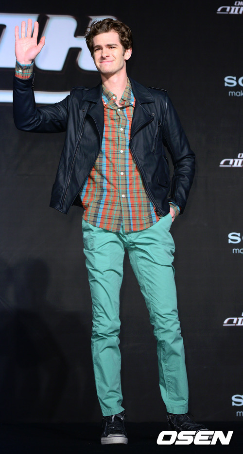 영화 '어메이징 스파이더맨' 내한 기자회견이 14일 오전 서울 역삼동 리츠칼튼 호텔에서 열려 앤드류 가필드가 포토타임을 갖고 있다.