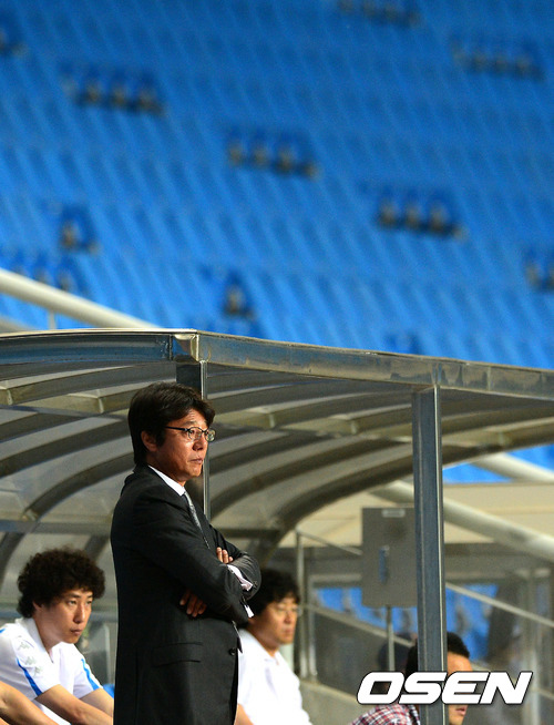 14일 오후 인천 축구전용경기장에서 열린 '현대오일뱅크 K리그 2012' 15라운드 인천 유나이티드와 포항 스틸러스의 경기, 후반 포항 황선홍 감독이 경기를 지켜보고 있다.