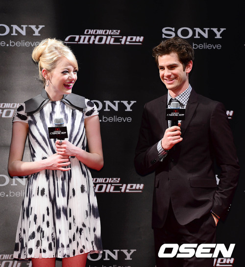 14일 오후 서울 강서구 롯데시네마 김포공항에서 열린 영화 '어메이징 스파이더맨'(감독 마크 웹) 레드카펫 & 프리미어 행사에서 할리우드 배우 앤드류 가필드가 인터뷰 중 환하게 웃고 있다.