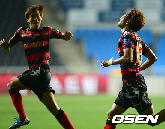 후반 포항 김원일이 동점골을 성공시키고 기뻐하고 있다. /jpnews@osen.co.kr