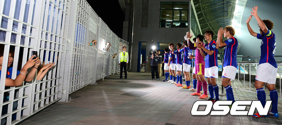 경기후 인천 선수들이 경기장 철문 너머에서 응원을 펼친 서포터즈에 인사를 하고 있다. /jpnews@osen.co.kr