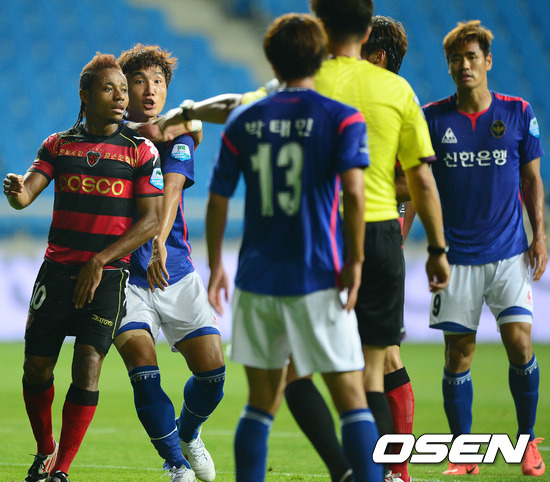 포항 스틸러스는 14일 인천 축구전용경기장에서 열린 '현대오일뱅크 K리그 2012' 15라운드 인천 유나이티드와 원정경기서 정인환에게 헤딩 선제골을 내줬지만 후반 추가시간 김원일이 천금 같은 헤딩 동점골을 터뜨리며 1-1 무승부를 거뒀다. 이로써 인천은 리그 11경기 연속 무승의 수렁에 빠졌다.