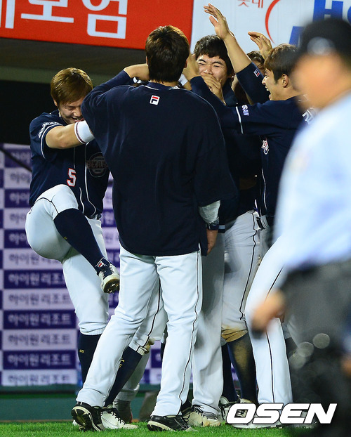 9회 2사 극적인 역전 투런포 양의지 집단구타
