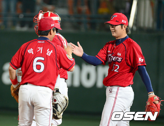 경기 종료후 KIA 마무리 한기주가 동료들과 승리의 기쁨을 나누고 있다. / ajyoung@osen.co.kr