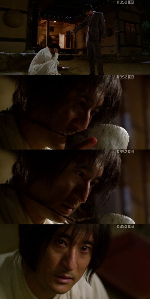 복부에 총을 맞은 강산은 조선 최고의 무사 백건(전현 분)의 도움으로 탈출하는데는 성공했지만 부상이 너무 깊어 멀리 달아나지는 못했다. 결국 집으로 피신한 강산은 뒤쫓아온 강토와 마주쳤고 강토는 "기껏 도망쳐 온게 우리집 마당이라니...재밌다"며 다시 총구를 들이냈다.