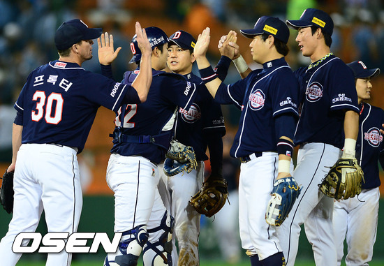 경기종료후 두산 선수들이 승리의 기쁨을 나누고 있다./ soul1014@osen.co.kr